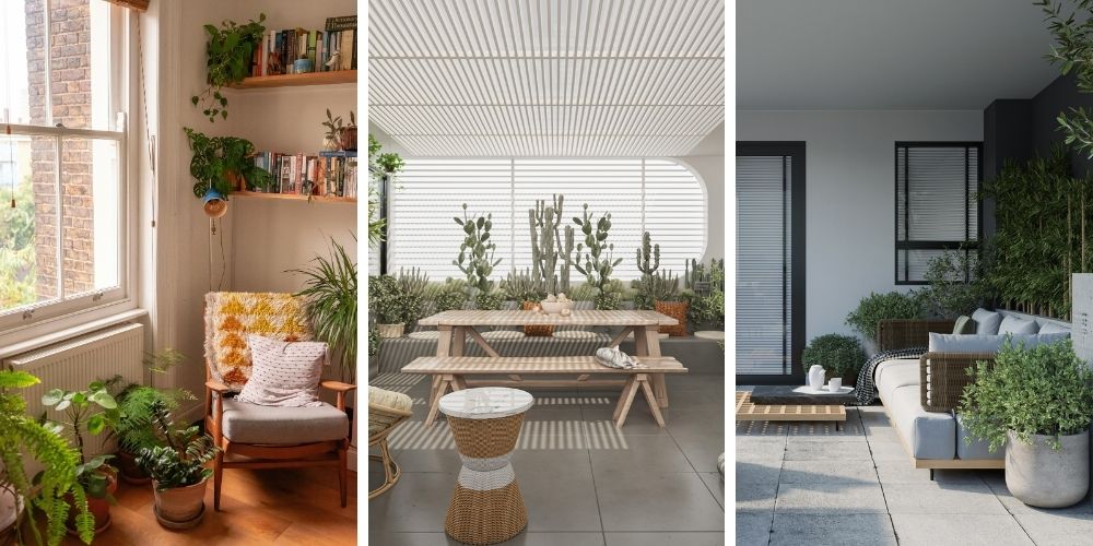 - Trồng cây leo, cây bụi hoặc làm vườn nhỏ ở ban công, sân thượng để che nắng trực tiếp cho mặt đứng và mái nhà, giảm lượng nhiệt hấp thụ vào không gian bên trong.